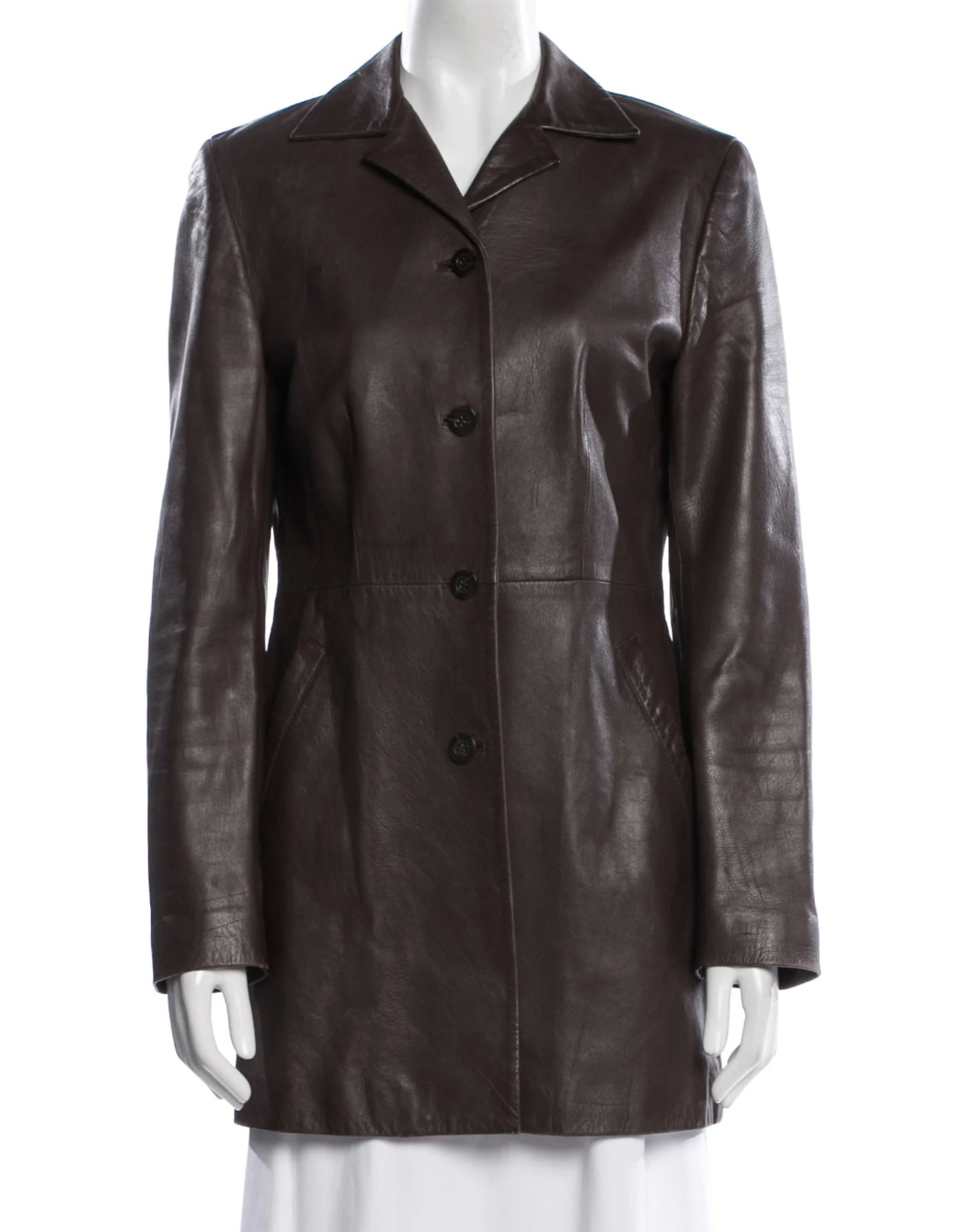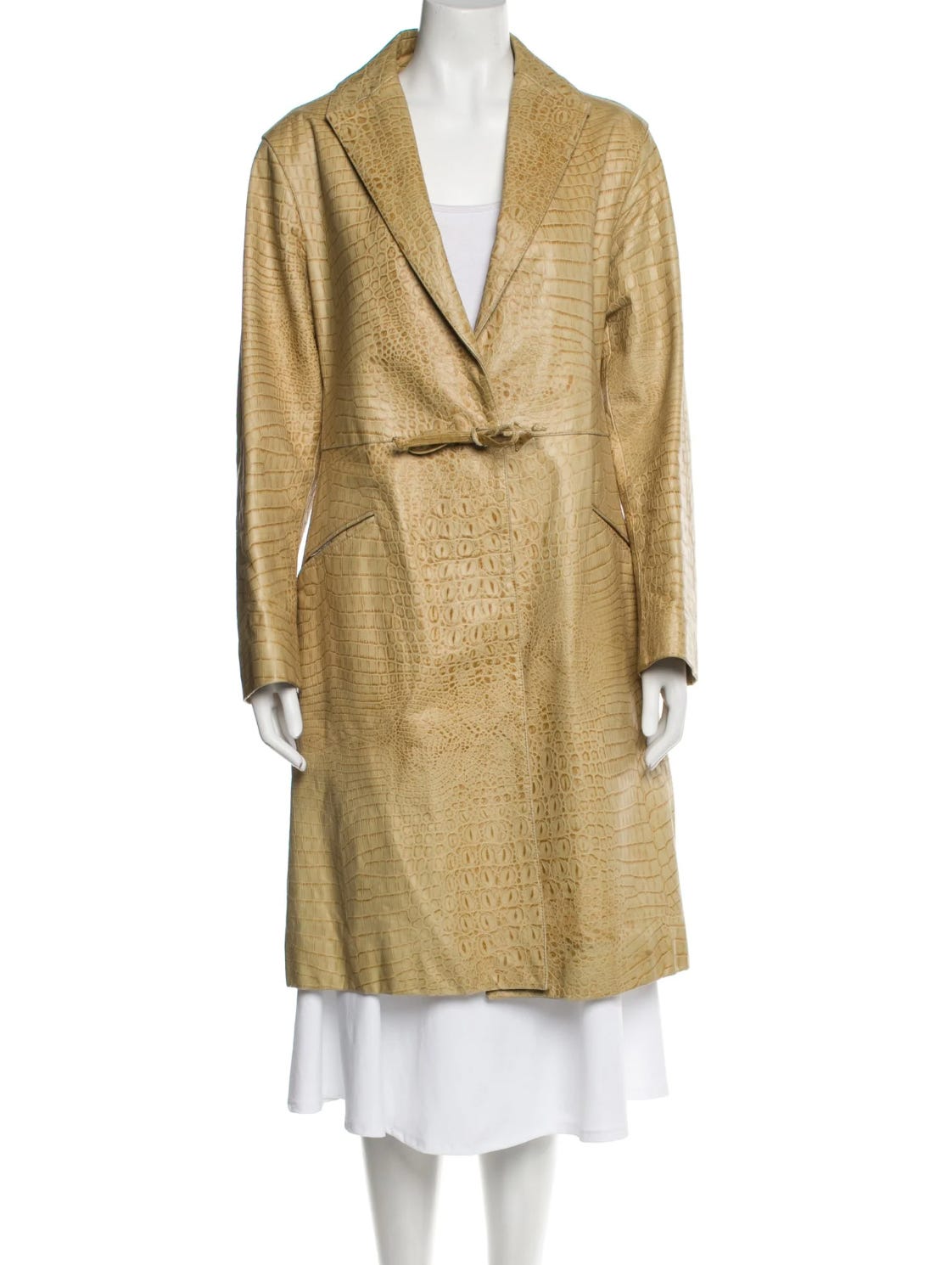 This vintage 2000s Pollini embossed leather trench would be the perfect topper to simple jeans and a tee.