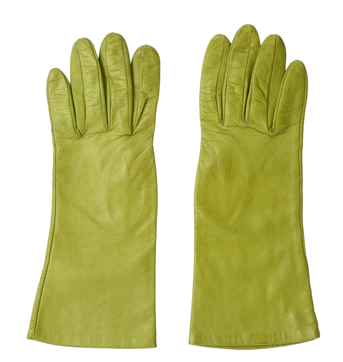 There is a rainbow of Neiman Marcus leather gloves on TRR, including this green pair, red, burgundy, and olive.
