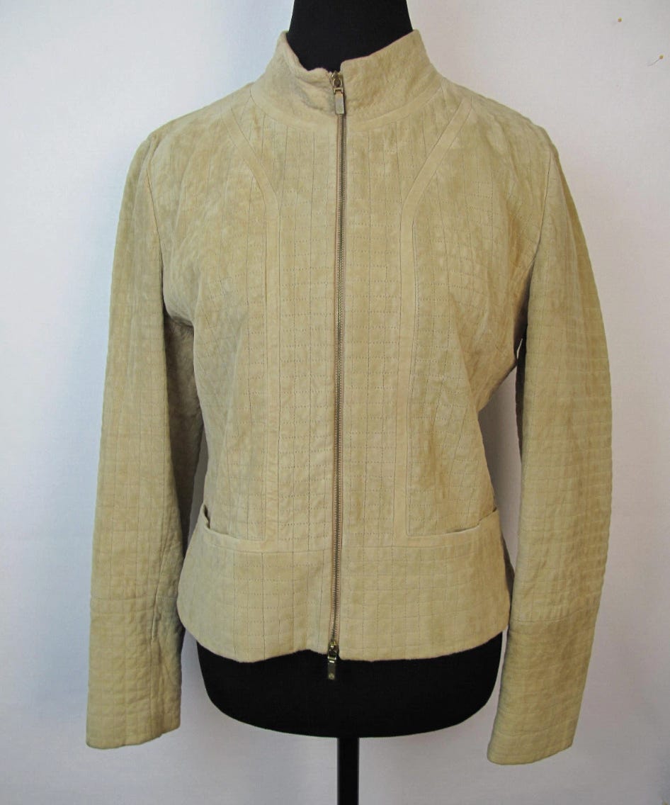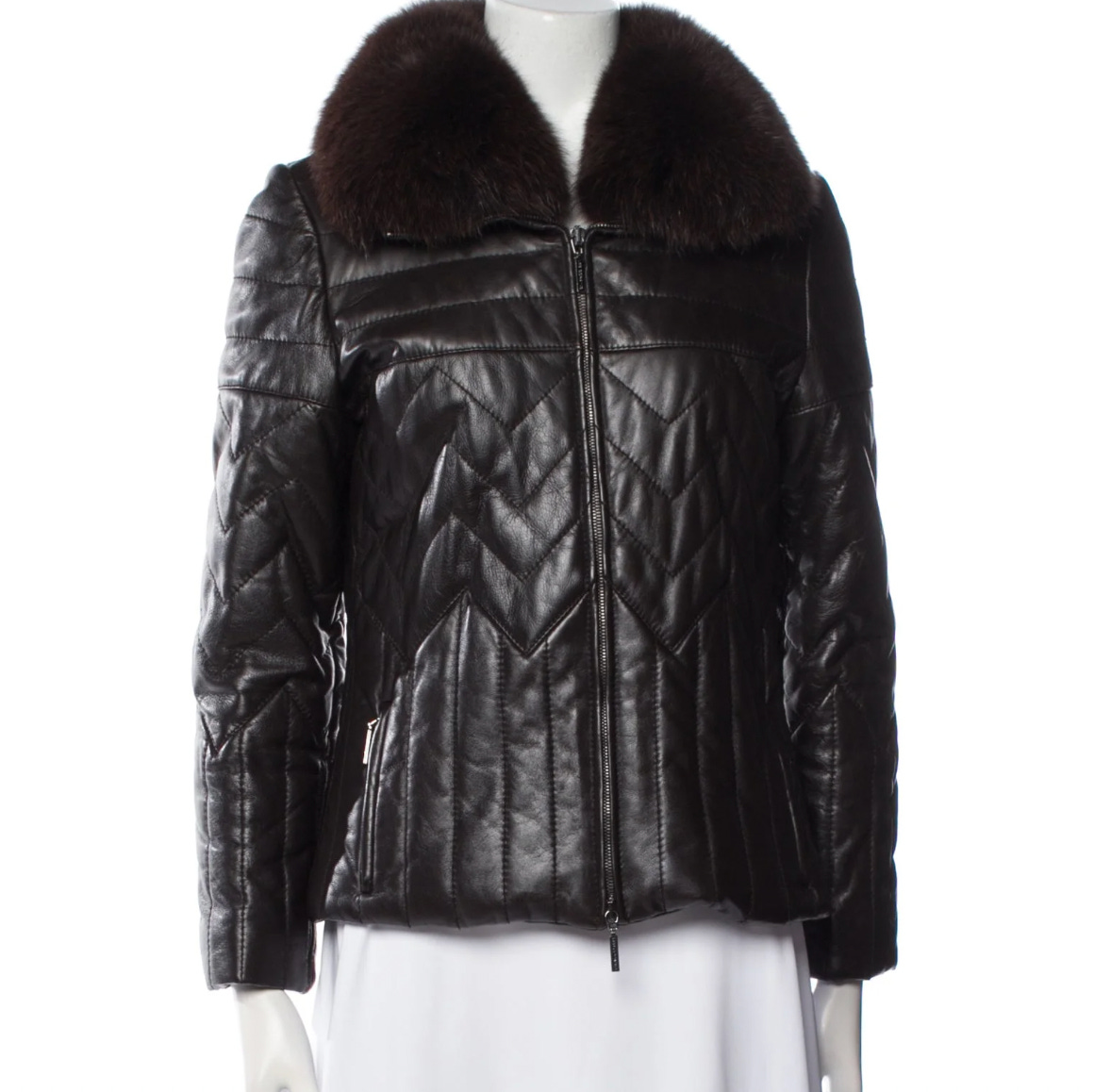 This quilted leather and fur collar zip jacket by Les Copains (US6) would also suffice.