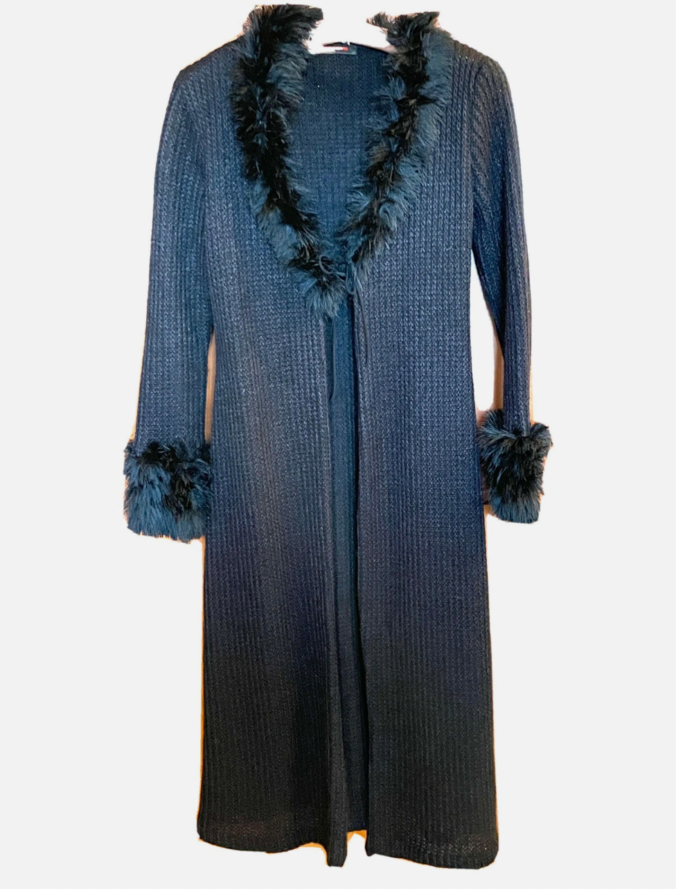 I really think you should try to negotiate the price down on this vintage Prada fur-trimmed long cardigan (M).