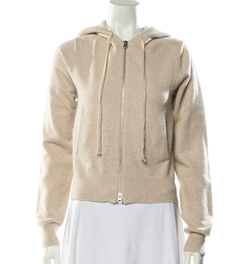 Another perfect spring layer, this extreme cashmere zip-up hoodie.