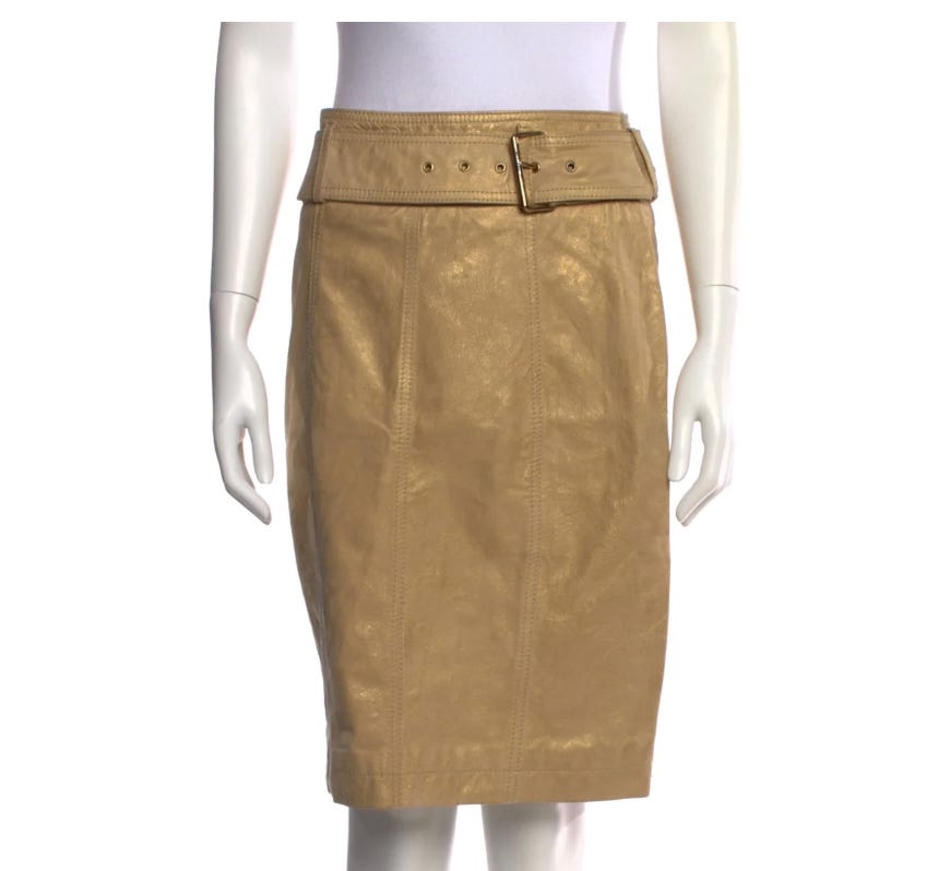 This vintage Galliano leather belted skirt with a white capsleeve baby t-shirt and a pair of Manolo Blahnik kitten heels—my dream outfit.