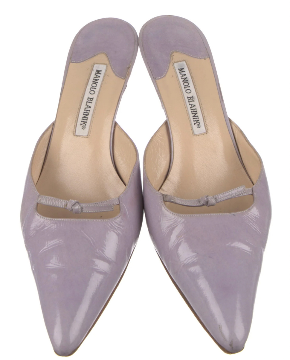 Same for this pair of lavender Manolo Blahnik mules (US 10).