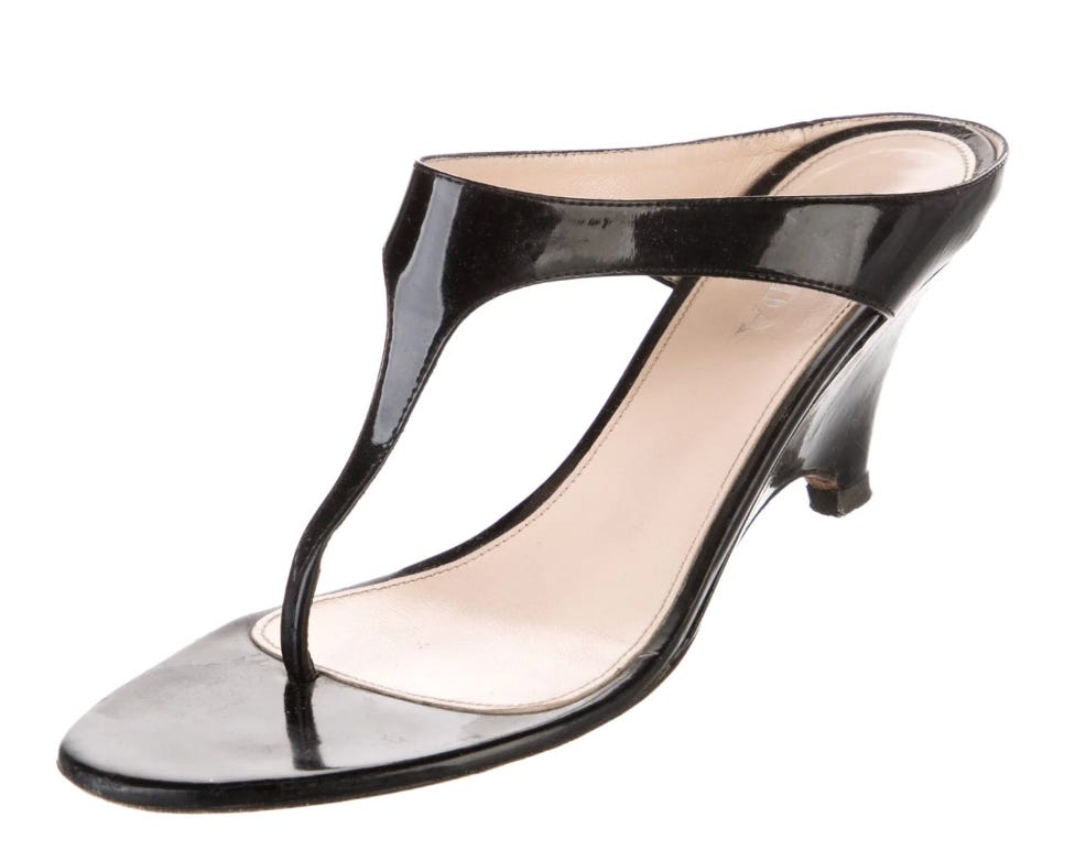My favorite pair of Prada black patent leather wedges (US 8.5) is on TRR for $157.