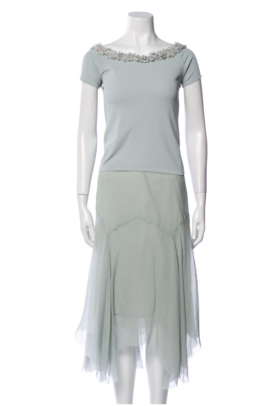 Walk with me on this vintage Blumarine powder blue skirt set…