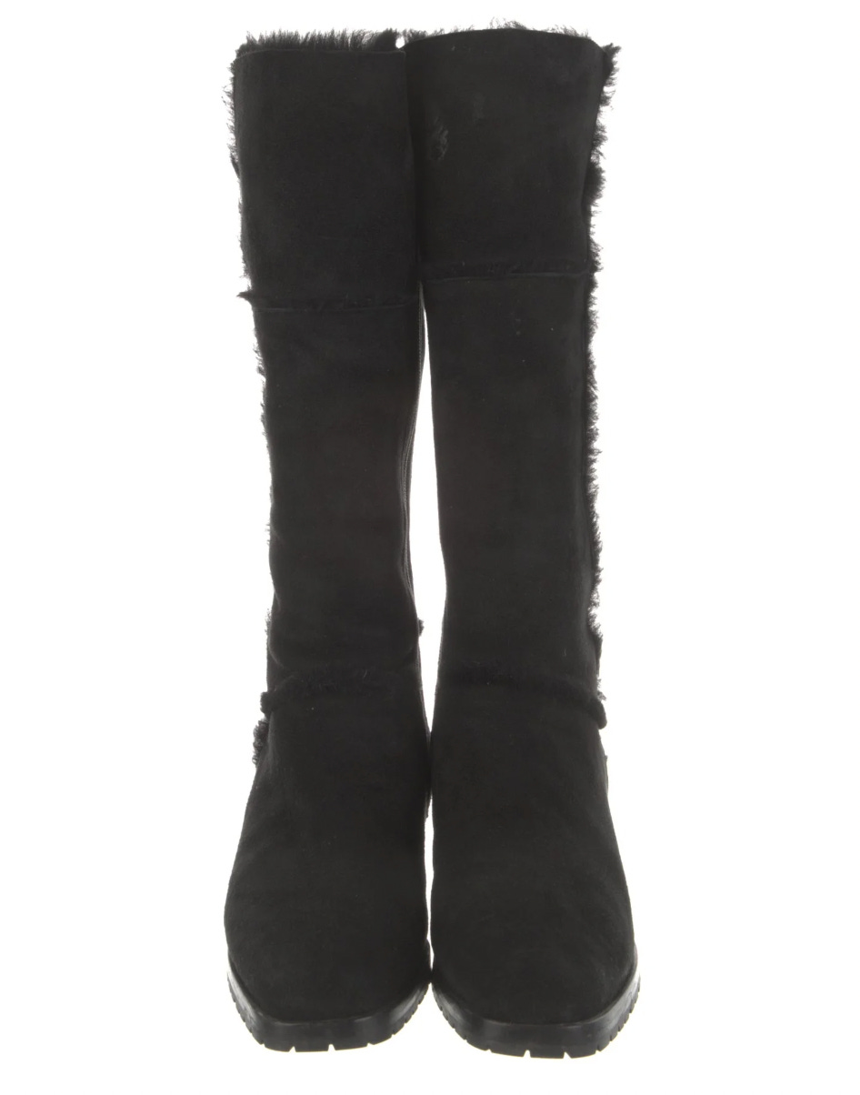 Or how about Manolo Blahnik’s black suede fur-trim boots (US 10)?